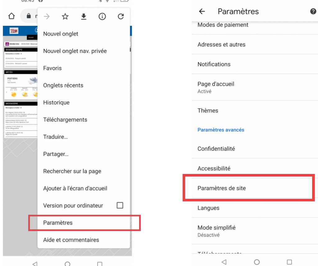 Pour activer JavaScript sur Android, allez dans les paramètres de votre navigateur, recherchez la section "Paramètres du site" ou similaire, puis activez l'option JavaScript.